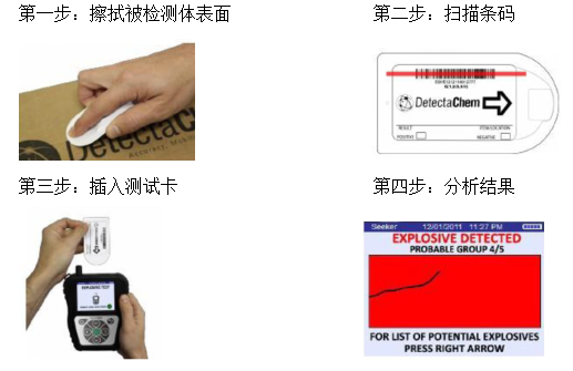 當屏幕顯示綠色時(shí),說明沒有爆炸物被檢測到;黃色屏幕說明可能會有(yǒu)爆炸物存在,建議用戶重新取樣並(bìng)再次測(cè)試一遍;紅色(sè)表明檢測到(dào)爆炸物。Seeker會給出屏幕提示並進一(yī)步告知細節。